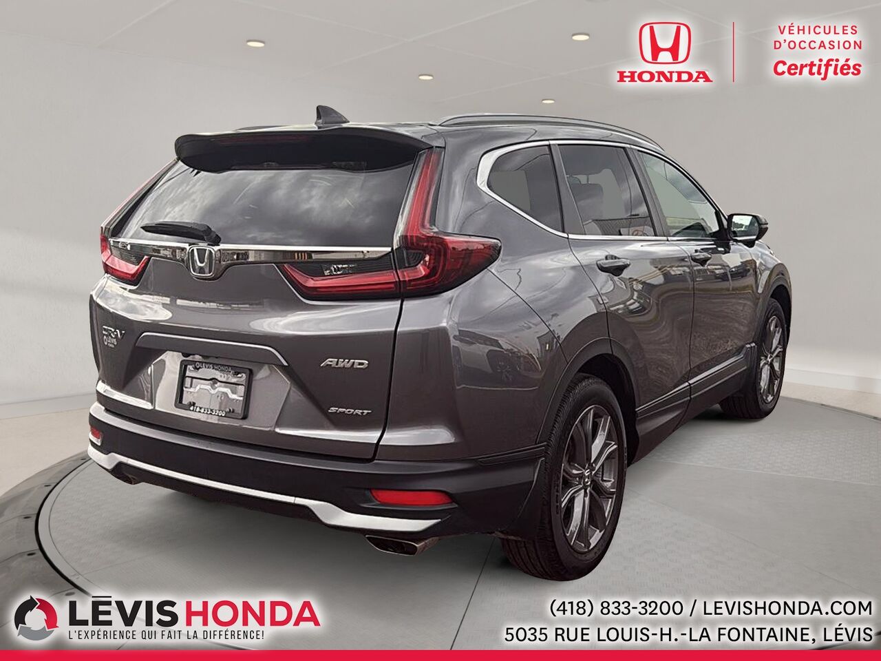This 2022 Honda CR-V Sport AWD is available at Lévis Honda in Lévis. Contact our sales team or come meet us at 5035 Rue Louis-H.-La Fontaine for more details, for a test drive, or to make a reservation.